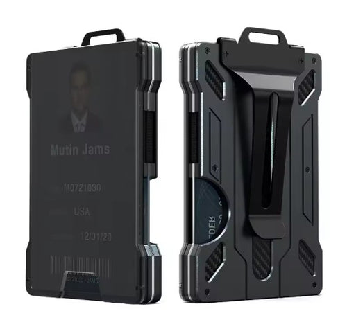 Durable Card Holder - Minimalist Carbon Fiber RFID Blocking Wallet for Men – Slim Metal Credit Card Holder with Mechanical Pop-Up Access – Lightweight Aluminum EDC Front Pocket Wallet
